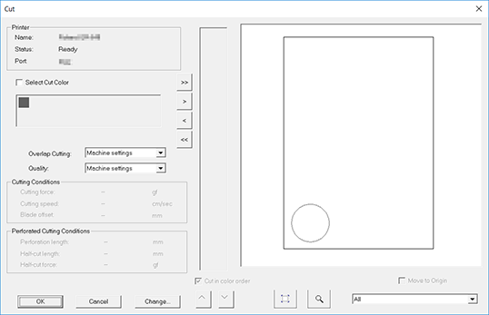 The cutting data is sent to the machine. When the machine receives the data, it automatically reads the crop marks using a sensor, and then starts cutting.