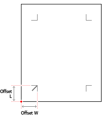 Here, the lower-left corner of the paper surface is the origin in the software. Later explanations assume that the distance from the origin to the lower-left crop mark has the positional relationship shown in the following figure.