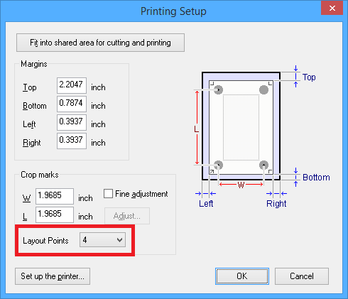 After setting the values, check that the crop marks are within the printing area.