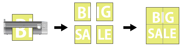 Tiled output lets you split up data that is larger than the cutting area over multiple sheets.